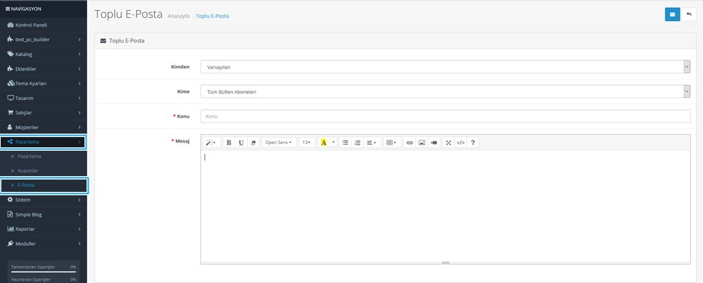 Kayıt, Satış Ortağı Kaydı, Hediye Çeki, Alışveriş Sepeti, Sipariş Verme, Sipariş Durumu, yani beklemede, işleniyor vb. İçin özelleştirilmiş e-posta şablonları oluşturulabilir.