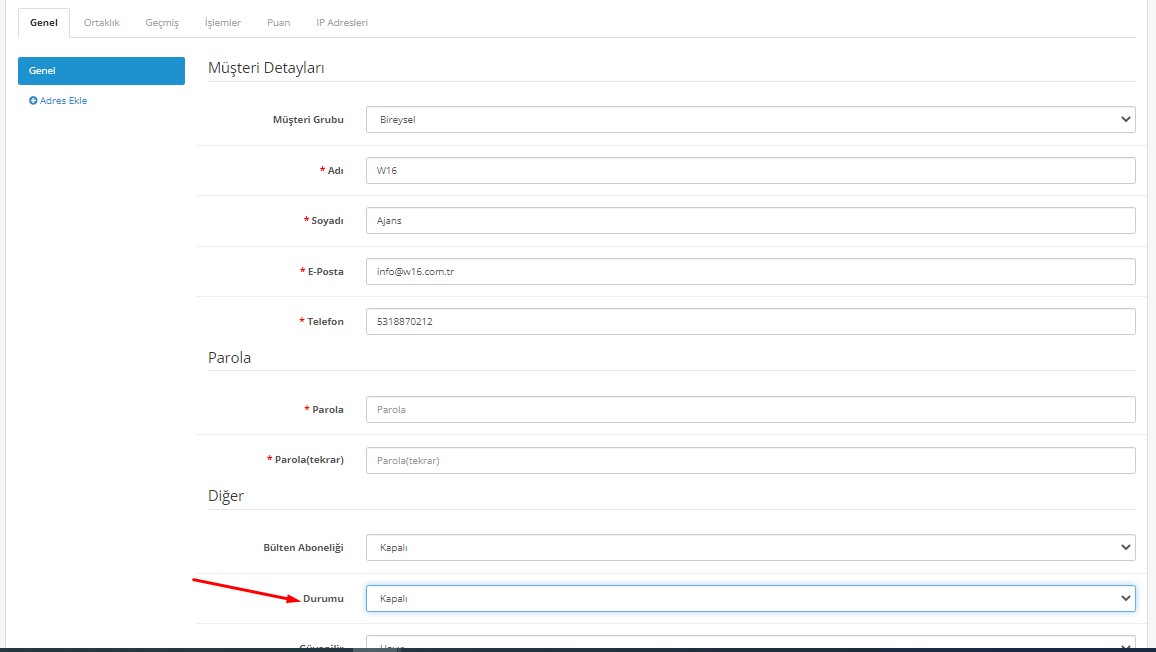 Bu bölümde; sitenize yanlış kullanıcı adı ve şifreyle giriş yapmak isteyen, ziyareti sırasında sistemin zararlı gördüğü bir işlemde bulunması ya da ziyaretin bir saldırı olduğunun öngörülmesi gibi durumlarda otomatik olarak engellenen IP’leri görebilirsiniz. Sizin engellemek ve üyeliğini kapatmak istediğiniz bir üye var ise aşağıda paylaştığımız görselden durumunu kapalı yapmanız yeterli olacaktır.