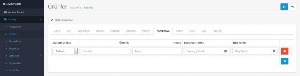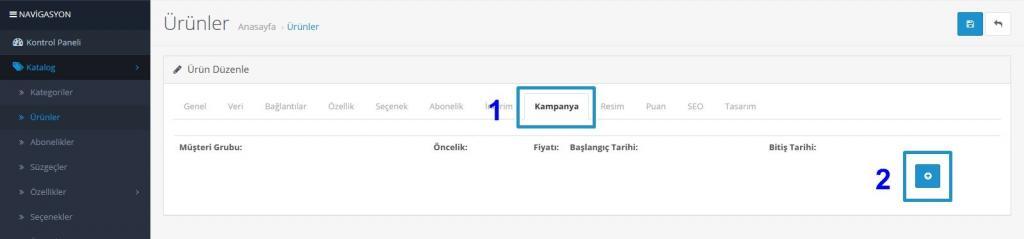 Ürün sayfasında kampanya sekmesine tıklayın ardından artı butonuna tıklayın.